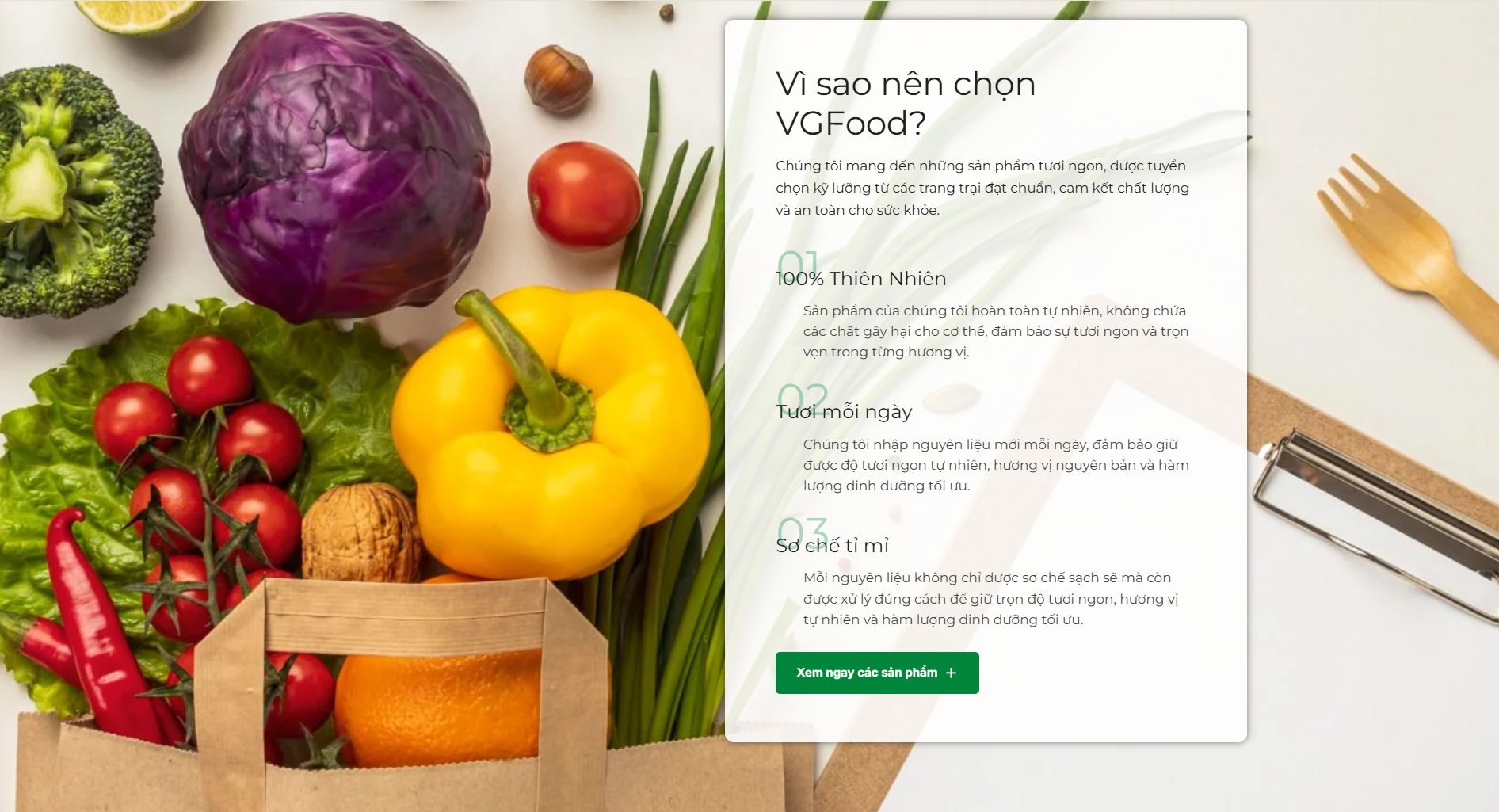Hướng đến giá trị cốt lõi "An toàn - Chất lượng - Tiện lợi - Bền vững - Tận tâm", VGFood luôn đồng hành cùng người nội trợ trong hành trình chăm sóc bữa ăn và sức khỏe gia đình.